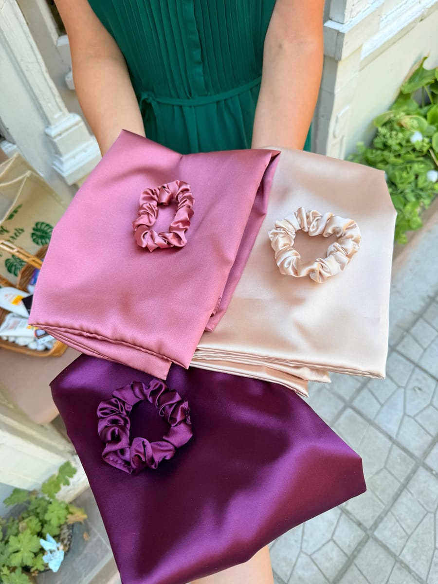 Начало / Продукти / Калъфка от сатен с подарък скрънчи