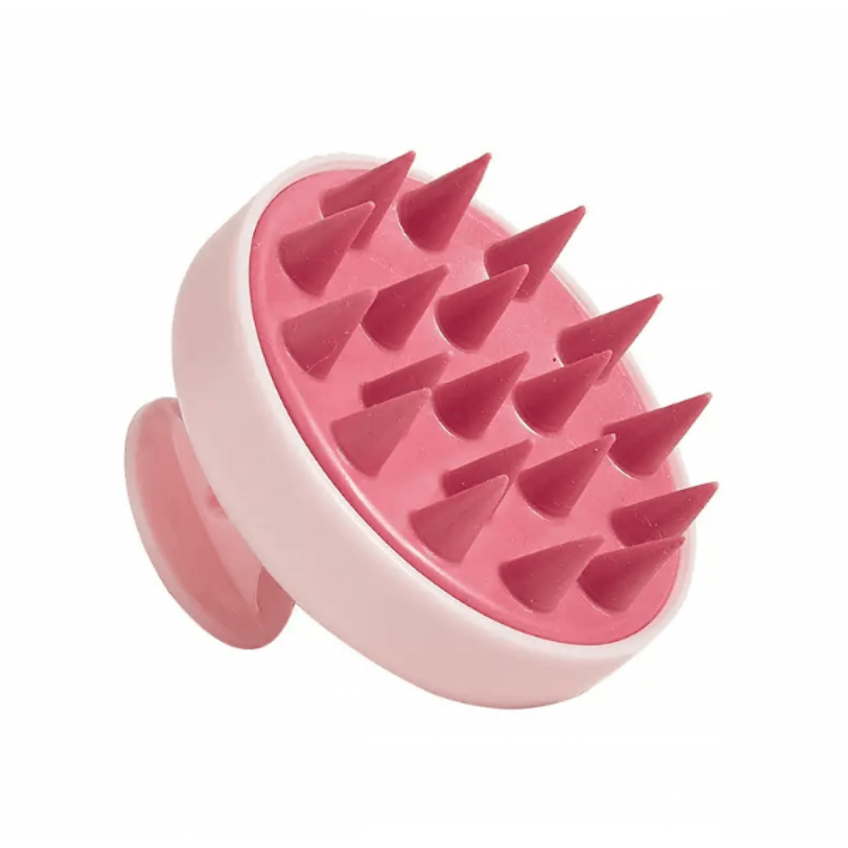 Мека силиконова четка за масаж на скалпа с красив дизайн и нежен розов цвят